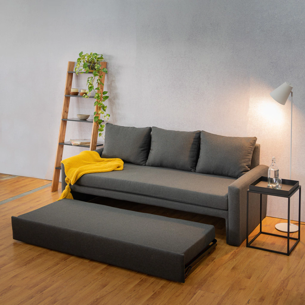 Colchón 28 kilos soft alta densidad, tapizado en mismo tela y color del sillón.